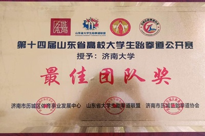 比赛设置了个人竞技、个人品势、自创品势、混双品势、团体品势、特技、竞速等项目。威廉希尔尚动跆拳道协会(简称“济大尚动跆协”)派出了八名选手参赛,在激烈的竞争中,选手们展现了个人的风采。经过一系列激烈的比拼,斩获金牌5枚,银牌1枚,铜牌9枚,威廉希尔代表队被授予“最佳团队奖”。