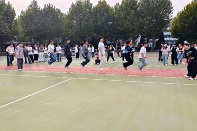 本次赛事共有八支队伍参加,每队由八名队员组成,共进行一分钟“一”字跳和三分钟“8字状”绕绳跳两个环节,取总个数进行排名。比赛中各队各显神通,纷纷为了各自团队的荣誉而战,有的队伍“一”字跳拉大两位摇绳同学的距离,充分利用场地空间。有的队伍则站位紧凑,利用喊口号保持步调一致。比赛过程中,同学们的加油声、欢呼声此起彼伏,为比赛增添了浓厚的氛围。