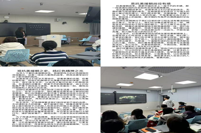 活动期间,各团支部结合实际情况,在团支书的带领下开展了一系列主题活动。“铭记峥嵘岁月史,传承抗美援朝志”主题交流会上,各团支部通过播放《志愿军:存亡之战》、《上甘岭》、《抗美援朝战争》等红色影片,生动地再现了中国人民志愿军们在艰苦卓绝的环境中英勇作战、不屈不挠的伟大精神。观影后的问题抢答环节更是将现场气氛推向高潮,使同学们在寓教于乐中更好地传承红色基因,赓续红色血脉。此外,各团支部还采用PPT展示、红色书籍导读等多种形式,积极带动同学们从多维度深入理解和认同抗美援朝精神的深刻内涵及其时代价值,勇于担当新时代赋予的责任。