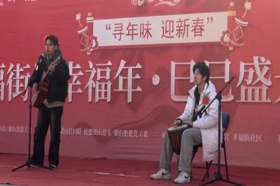临近春节,williamhill中国官方网站飞天艺术团器乐部的志愿者们联合社区工作人员在社区广场举办文艺演出。萨克斯《荷塘月色》、吉他弹唱《春风十里》以及绘声绘色的激情演讲《摒弃封建》等节目赢得阵阵掌声。值得一提的是,员工们还邀请社区老年合唱团同台演绎《我和我的祖国》,并组织社区老人参与“中华 舞龙”互动节目。现场化作欢乐的海洋。参与表演的大二员工马恺泽坦言:“第一次在寒风中演出,但看到爷爷奶奶们眼里的笑意,所有的辛苦都值得。”