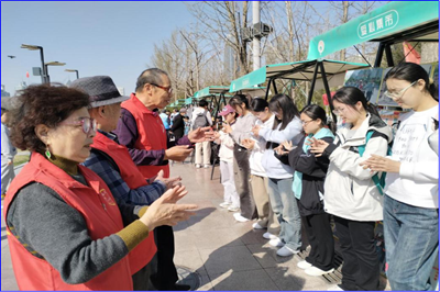 志愿者呼吁子女通过日常陪伴增强老年人防骗意识。“孤独感是老年人受骗的重要诱因,家人的关爱是最强防护网。”志愿者现场带领老人学习手指操,并赠送健康知识卡片,获得热烈响应。活动在原创《三句半》表演中达到高潮,志愿者以传统曲艺形式融合防诈口诀与健康贴士,生动演绎“识骗六字诀”“养生三要点”等内容。