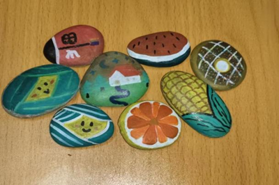 活动期间,同学们有序领取形态各异的石头,充分发挥自己的想象力和创造力,用画笔在石头上勾勒出各种图案和色彩。有的同学画下可爱的卡通形象,仿佛在诉说童真;有的同学描绘出宁静的自然风景,流露出对美好的向往;还有的同学勾勒出热烈的花朵,展现出蓬勃的生命力。每一笔、每一划都倾注着同学们的情感与创意,每一块石头都展现着同学们丰富的内心世界。活动过程轻松有趣,同学们沉浸其中,不断探寻内心的宁静与力量。