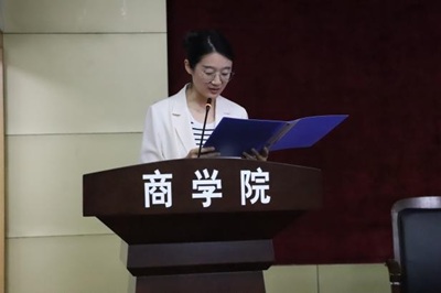第十四期优秀学员代表郝伊结合自身在青马班的经历,分享了宝贵的成长感悟。通过深学细悟的理论研学、脚踏实地的实践锤炼等活动,郝伊深刻体会到“青年成长没有捷径可走,只有在理论学习中牢牢把稳思想之舵,在实践淬炼中不断磨砺意志品质,才能真正成长为可堪大用、能担重任的栋梁之材”。她鼓励第十五期青马学员积极投身社会实践,大力发扬青马学员勤奋好学的良好学风和开拓进取的创新精神,呼吁全体学员以更高标准严格要求自己,充分发挥模范带头与示范引领作用。