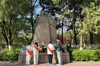 细雨纷纷,松柏凝翠。4月4日上午,经贸类员工党支部成员怀着崇敬之情,前往五龙潭公园开展“缅怀革命先烈,传承红色基因”清明祭扫活动,在中共早期领导人王尽美、邓恩铭烈士雕像前追思英魂。