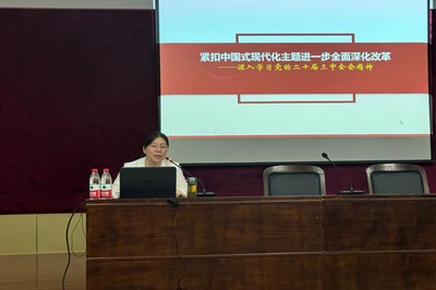 彭亚宁在主持报告时强调,学习好、宣传好、贯彻好全会精神是当前和今后一个时期的首要政治任务,全院师生要切实把思想和行动统一到党的二十届三中全会精神上来。一是要坚持持续学、深入学,原原本本研读习近平总书记重要讲话和中央《决定》、全会《公报》,将学习全会精神与习近平总书记关于教育工作的重要论述精神相结合,在学思践悟中全面准确把握习近平总书记关于全面深化改革的一系列新思想、新观点、新论断;二是学习中要紧扣“推进中国式现代化”这个主题,深刻理解把握“统筹推进教育科技人才体制机制一体改革”的精神要义,更加自觉担负起政治责任,落实好立德树人根本任务,聚焦学科交叉融合、专业转型升级,完善产教、科教协同育人机制,以钉钉子精神推进育人方式、教学模式适应新要求等各项改革任务的落实;三是要进一步强化理论武装,持续打造开展教师思政的“专家课堂”,确保马克思主义中国化的最新理论成果入眼、入耳、入脑、入心,注重在课程思政建设中讲透讲活新时代改革开放的故事、党领导人民推进中国式现代化的故事,推动新时代党的创新理论进头脑、进课堂、进教材。